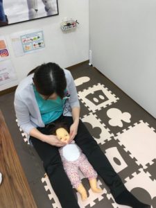 お子さまの腕を挟み、固定することで仕上げ磨きがしやすいですとお伝えしました♫