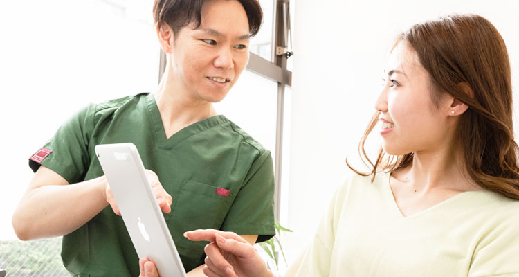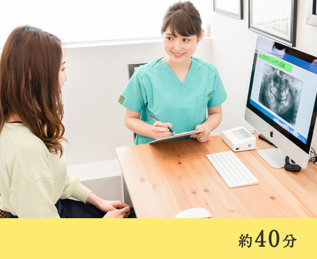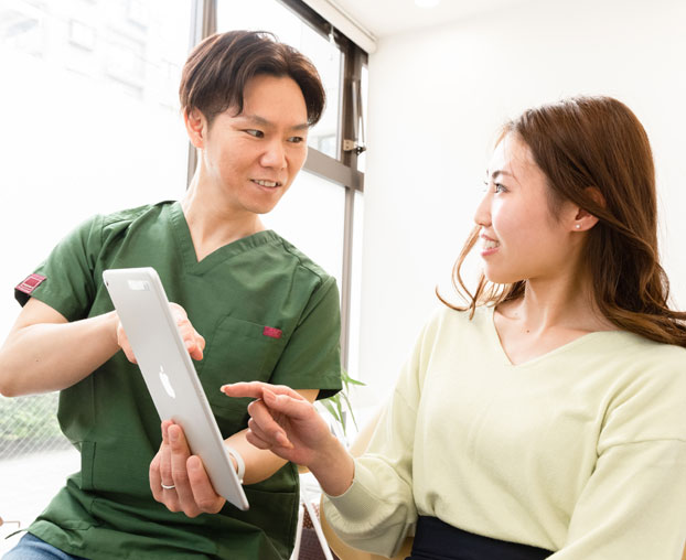 患者様のお悩みをお伺いし、お口の状態を拝見したうえで、必要な処置や治療期間、費用などをご説明します。