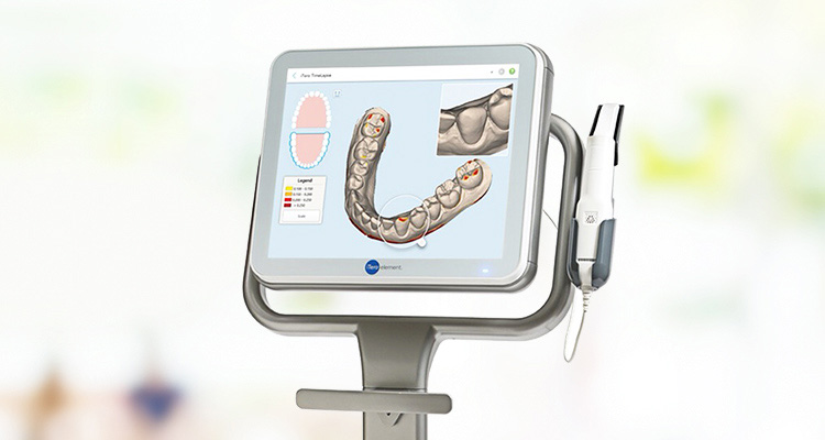 光学3Dスキャニング装置による型取りは、シリコン材料を使用する従来の型取りと異なり、施術中の苦しさや嘔吐反射が起こりにくく、時間も短縮できることが特徴です。